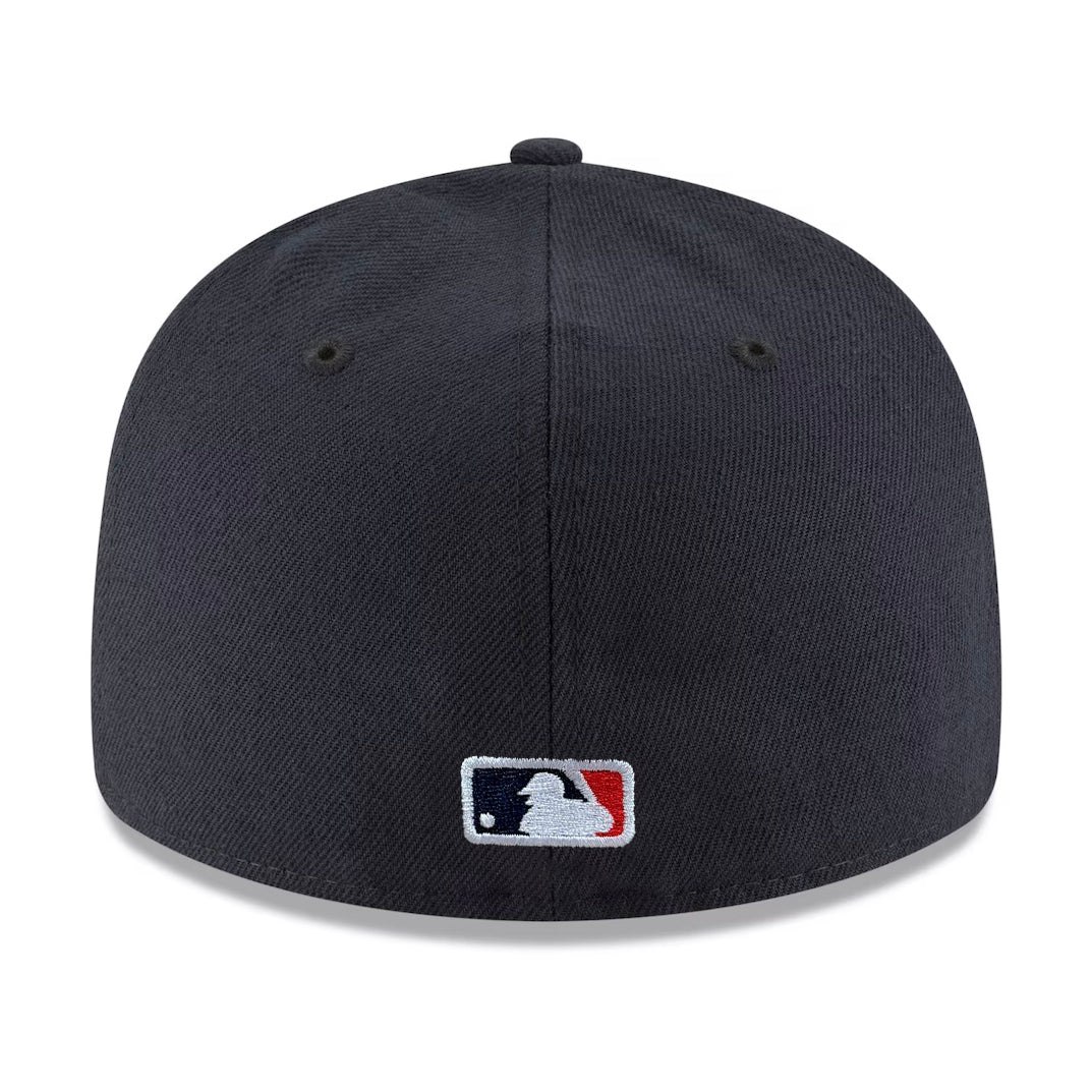 Темно-синяя бейсболка New Era 59FIFTY Low Profile с вышитым логотипом клуба New York Yankees выступающего в Главной Бейсбольной Лиге (MLB). Размер подбирается по обхвату головы