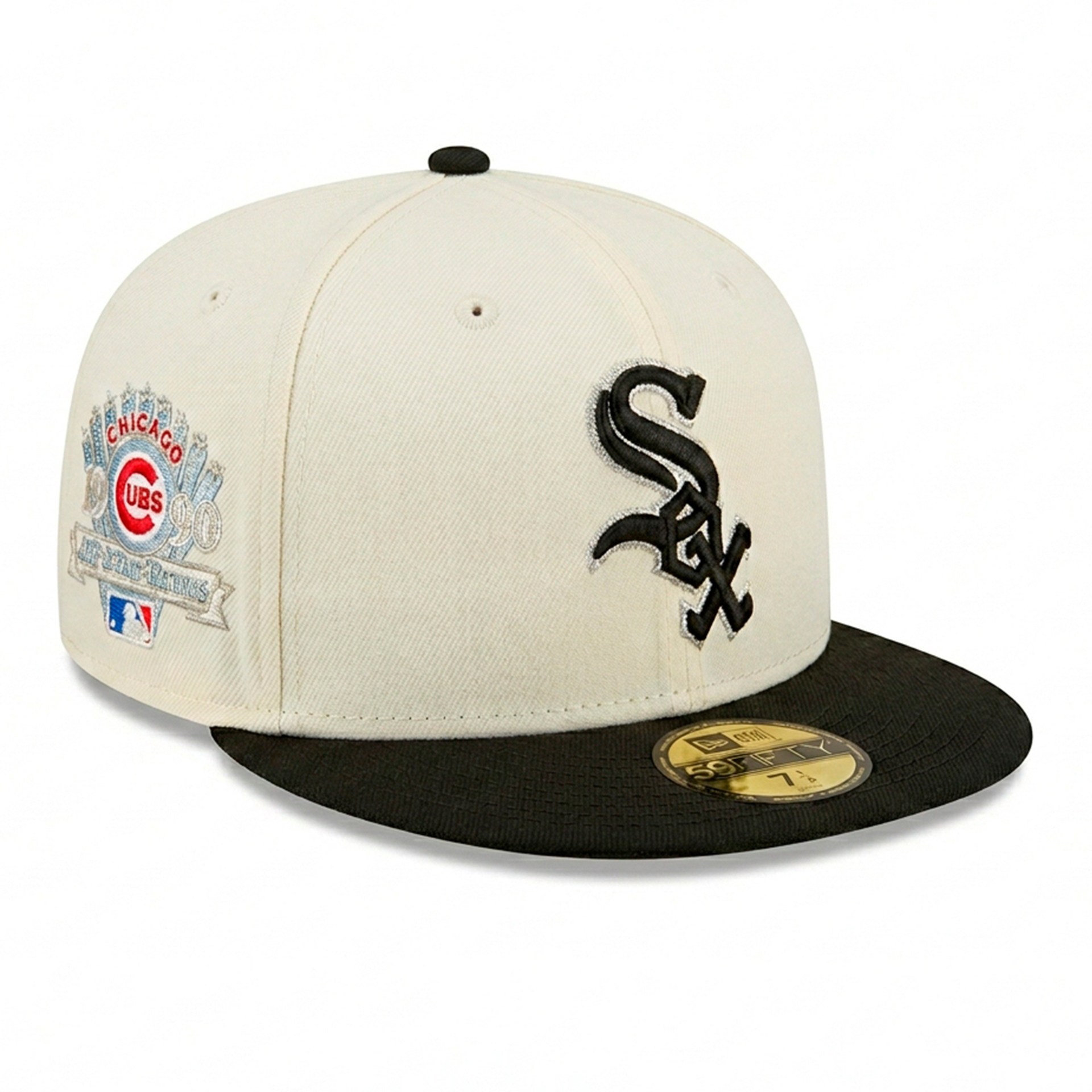 Бежевая бейсболка New Era 59FIFTY с вышитым логотипом клуба Chicago White Sox выступающего в Главной Бейсбольной Лиге (MLB). Размер подбирается по обхвату головы